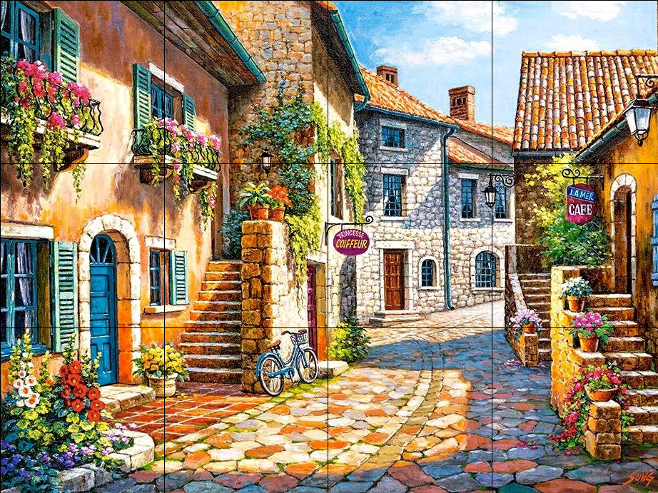 Picking a painting to reproduce was easy enough; no one had a very strong preference. We wanted a painting that had something relatively fun/interesting to paint no matter which section you happened to be assigned. We also vetoed any paintings with people in them (people are hard). In the end, I found this, which was cropped for the sake of being able to divide it into squares: