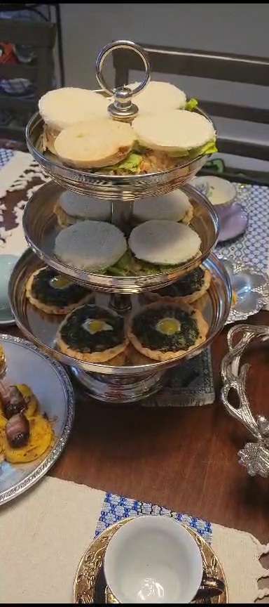 I've actually made the mini creamy greens pies before, at a tea part I hosted a couple years back, and they were a huge hit! I only have a single photo to remember that event by, unfortunately. The sheer scale was so grand—I had to make enough servings for 10 people—the largest I'd ever done before or since. Because I want people to eat things while they are still warm, I had them dig in before I could even think to take close-ups of the food. This time, however, I tasked all my guests with taking photos for me, so I wouldn't have to worry about it. And they took their job very seriously. I mean, just look at these: