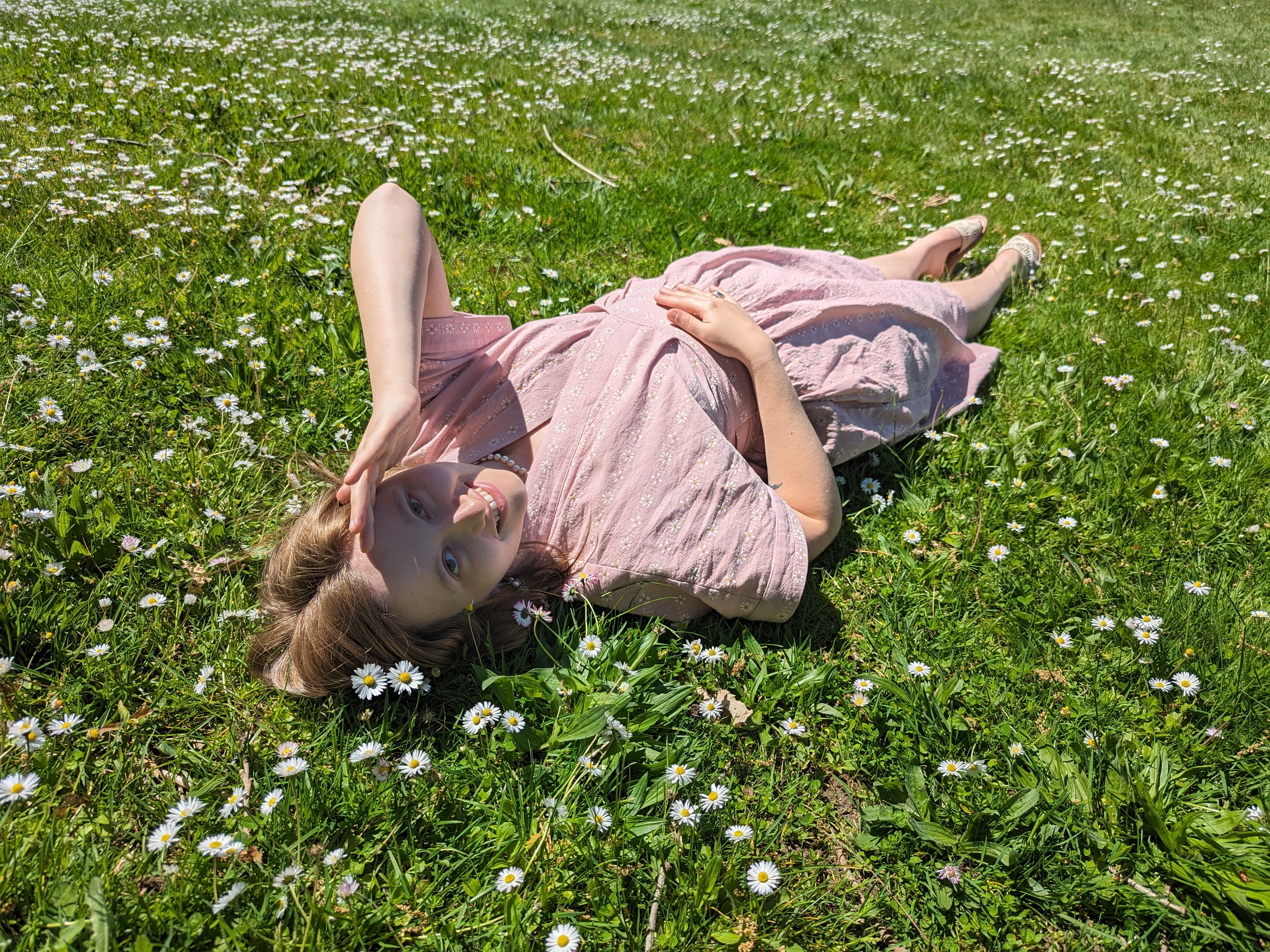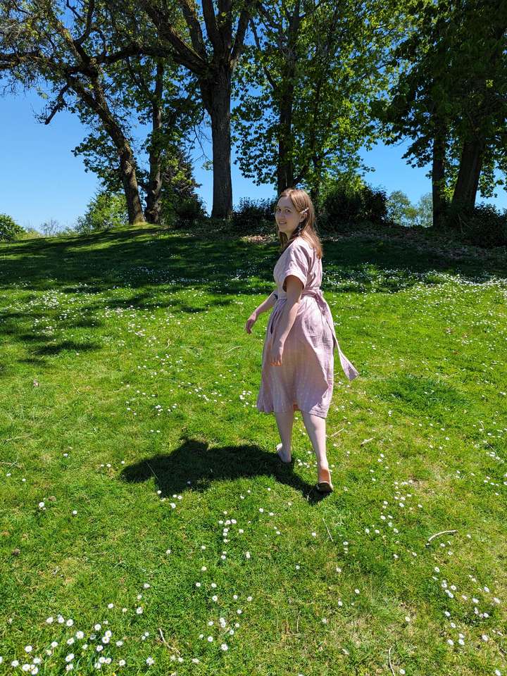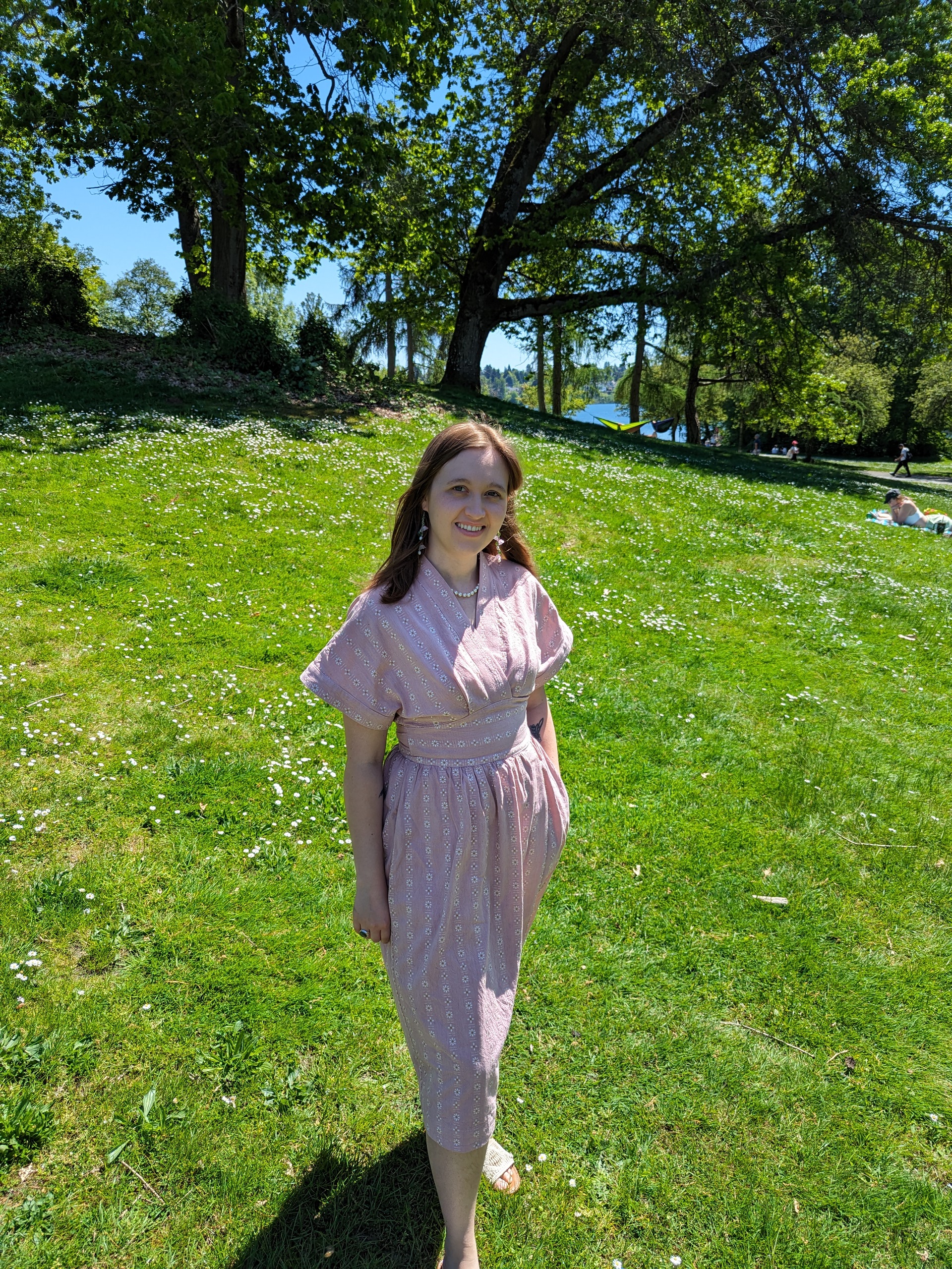 When I finished the dress, I went to the park to take pictures, and was delighted to see a whole field of daisies! The perfect backdrop.