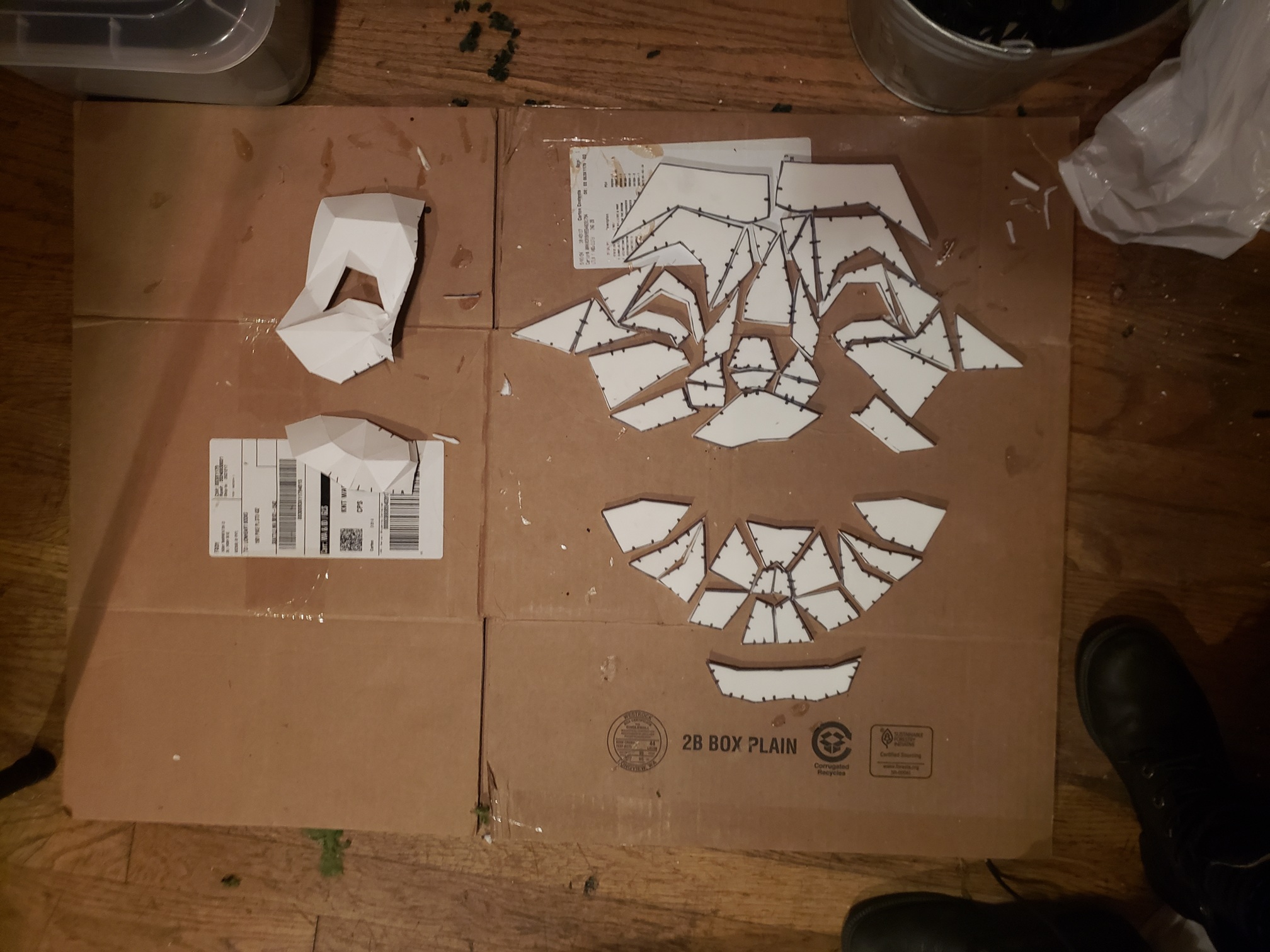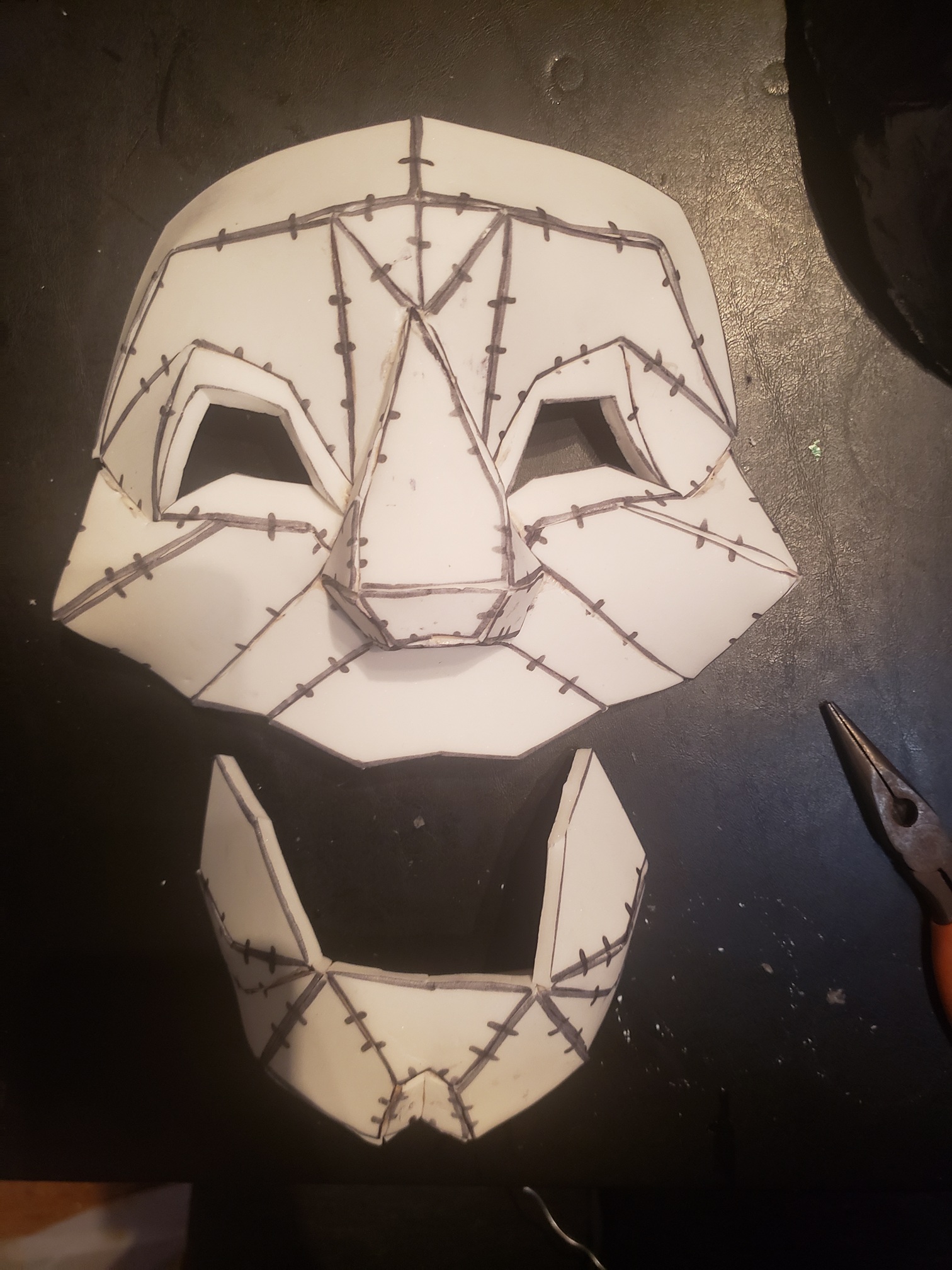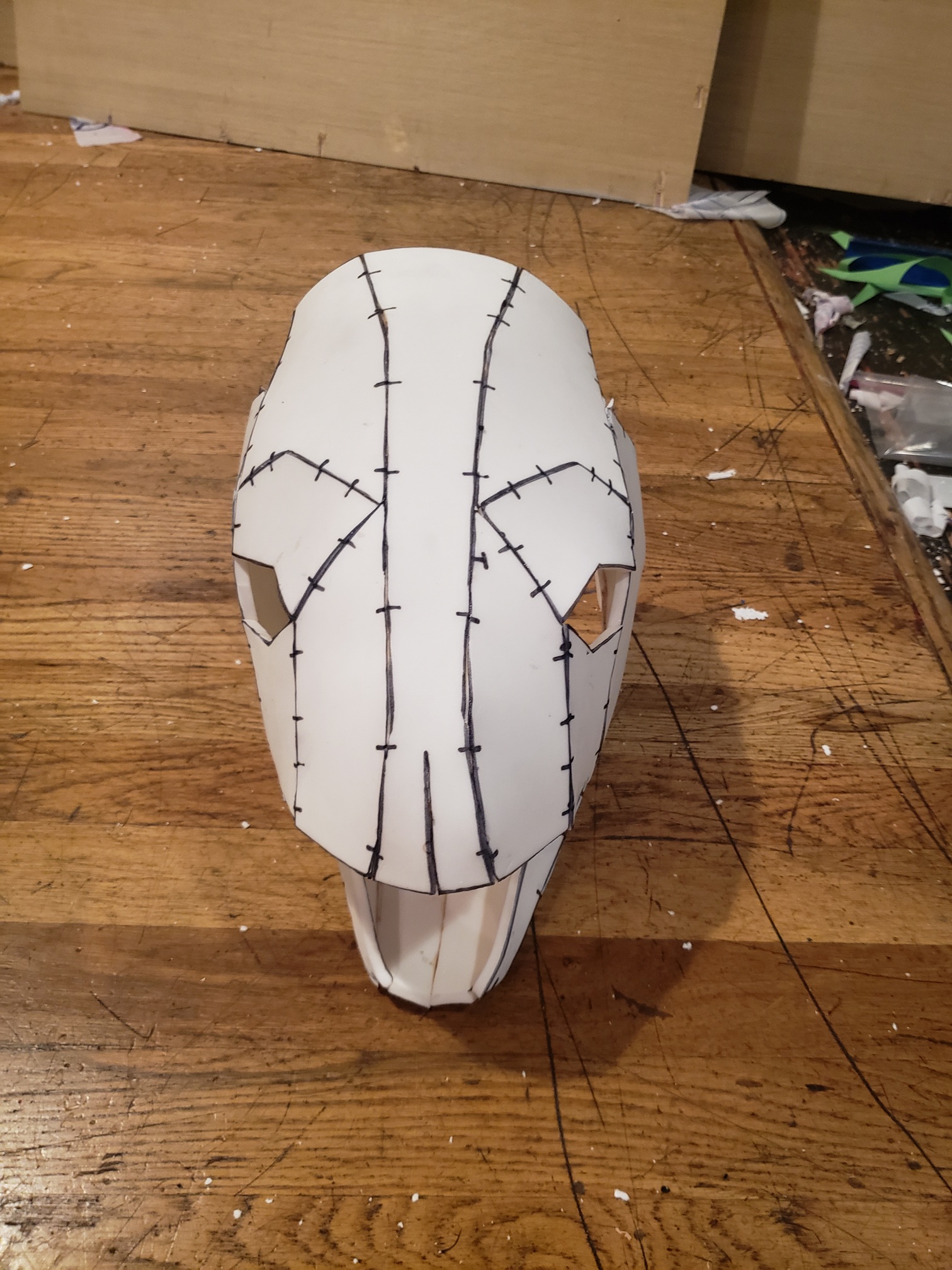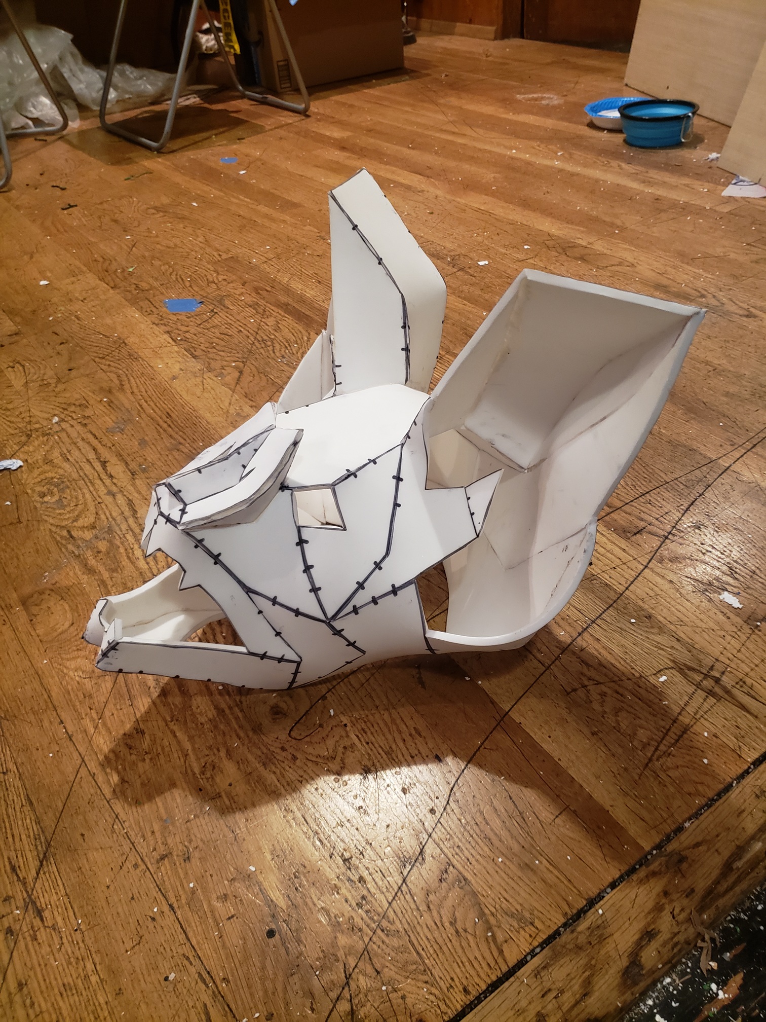 People were very generous with their time and materials. I was given the contact cement and eva foam that I used; I wouldn't have been able to get those two paper mask patterns that fit my vision without the help of my blendr friend; and I definitely would never have been able to get it all done within the budget without their kindness!