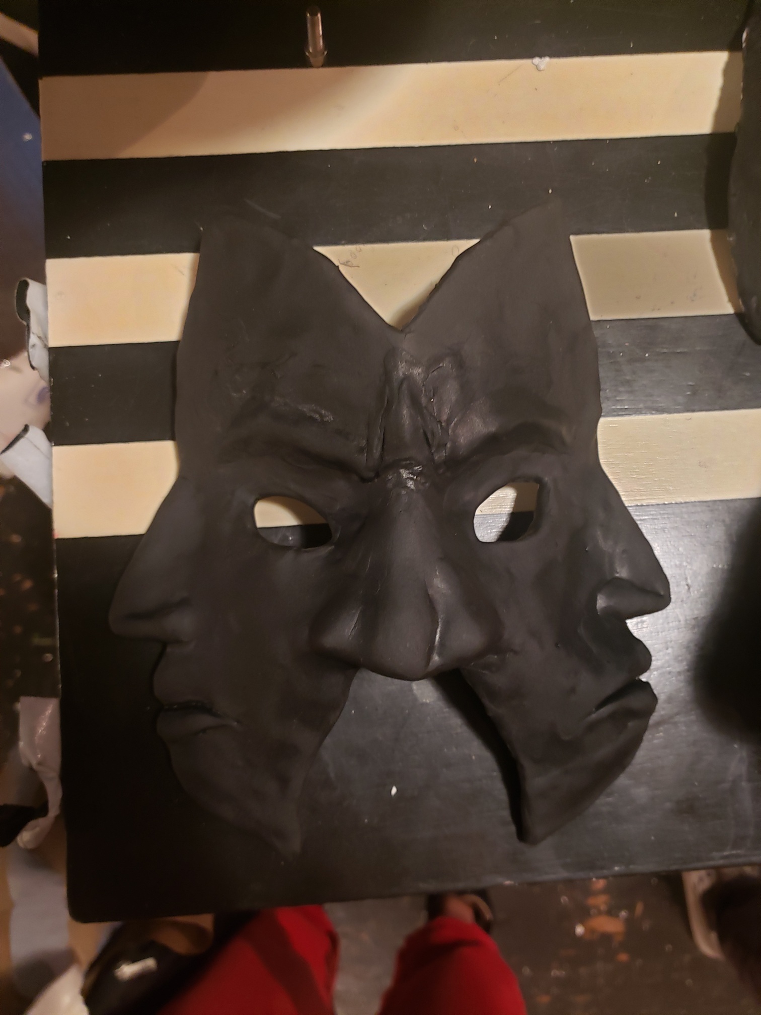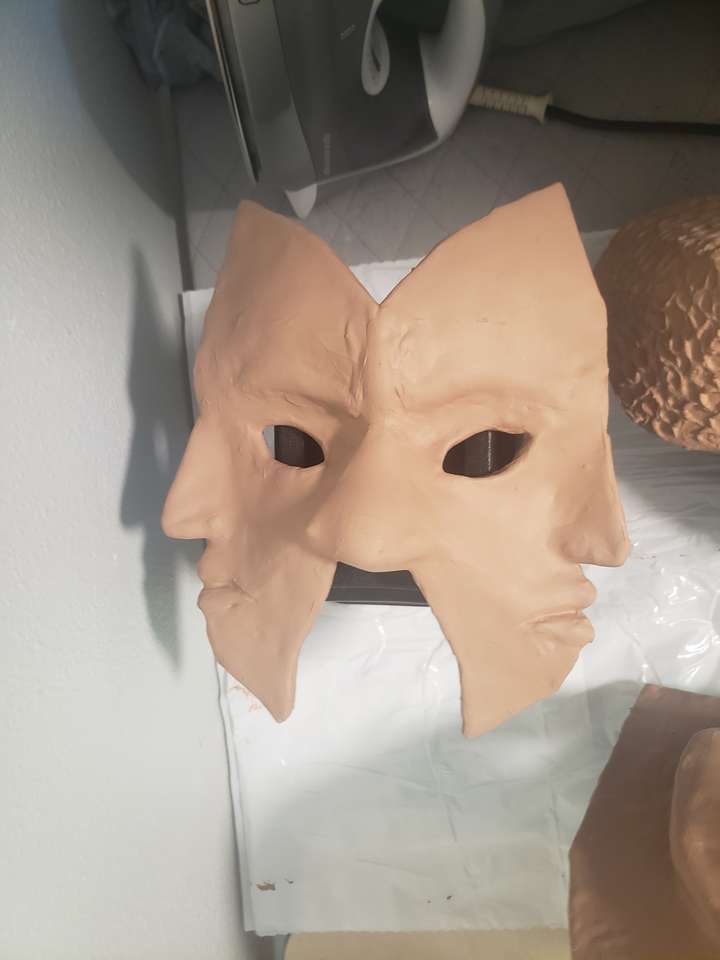 I then waited 24 hours for the glue to set, and covered the fronts in foam clay to smooth the features and give them a more organic look. The foam clay expands as it dries, so some of the masks lost a lot of the definition I had sculpted originally. This was especially the case for the multi-faced mask, but the others turned out okay.