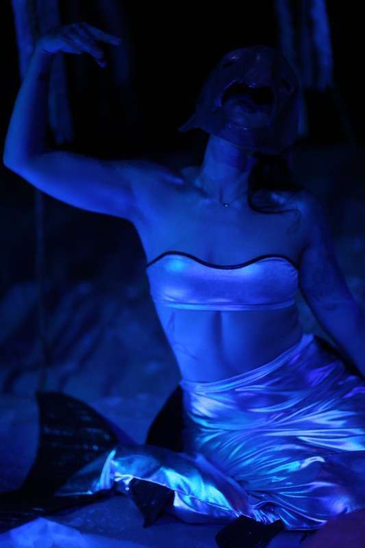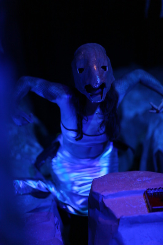 When you enter the house of the theatre, the seats are gone—replaced by the jagged rocks in a hauntingly beautiful lake. Among the kelp, which dances in a gentle current, a curious Siren stalks. When a strangely familiar melody begins to play, it emerges—hormonizing as it floats closer.